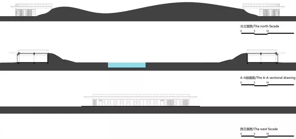 站房西北側的綜合樓通過層層的退臺向上延展而達到垂直綠化的目的。其平面呈弧形,立面以玻璃、鋁型材為主,精細的劃分展現出簡潔大氣的建筑形象。綜合樓部分采用覆土的營造手法,與地景設計結合的更加緊密。整個建筑如同從土地中生長出來一般,舒展著輕盈、柔和的體態將環境納入麾下。
