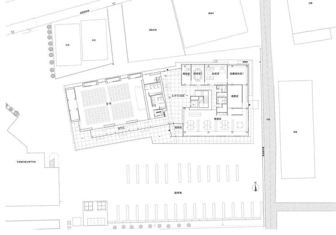佐賀舊城的小巷和水道至今維持著原來(lái)的面貌,牙醫(yī)協(xié)會(huì)經(jīng)辦的職業(yè)學(xué)校就位于其中一條街道的深處。除了作為牙醫(yī)協(xié)會(huì)的辦公地點(diǎn),該建筑也用于教學(xué)和租賃,大樓的主廳保持了獨(dú)立,一層的體量在各個(gè)方向上都擁有寬闊的開(kāi)口,便于街道上的人們進(jìn)入。