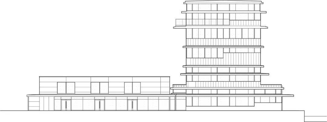 塔樓的體量較為緊湊,主要用于培訓(xùn)和辦公。獨(dú)立大廳和辦公塔樓通過(guò)巨大的屋面被整合為一座一體化的建筑,并通過(guò)屋檐下的門(mén)廳形成空間上的連接。這種布局方式也從某種程度上展現(xiàn)了“開(kāi)放的牙醫(yī)社會(huì)”的理念。