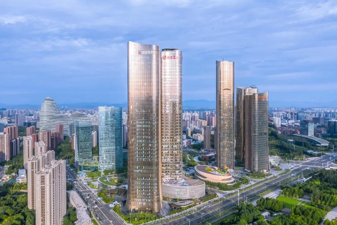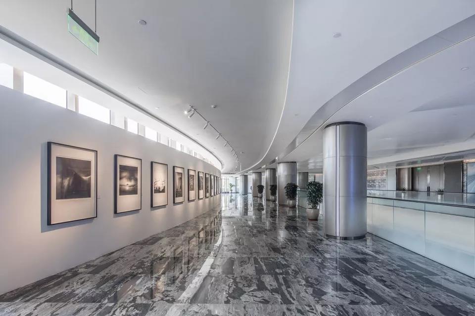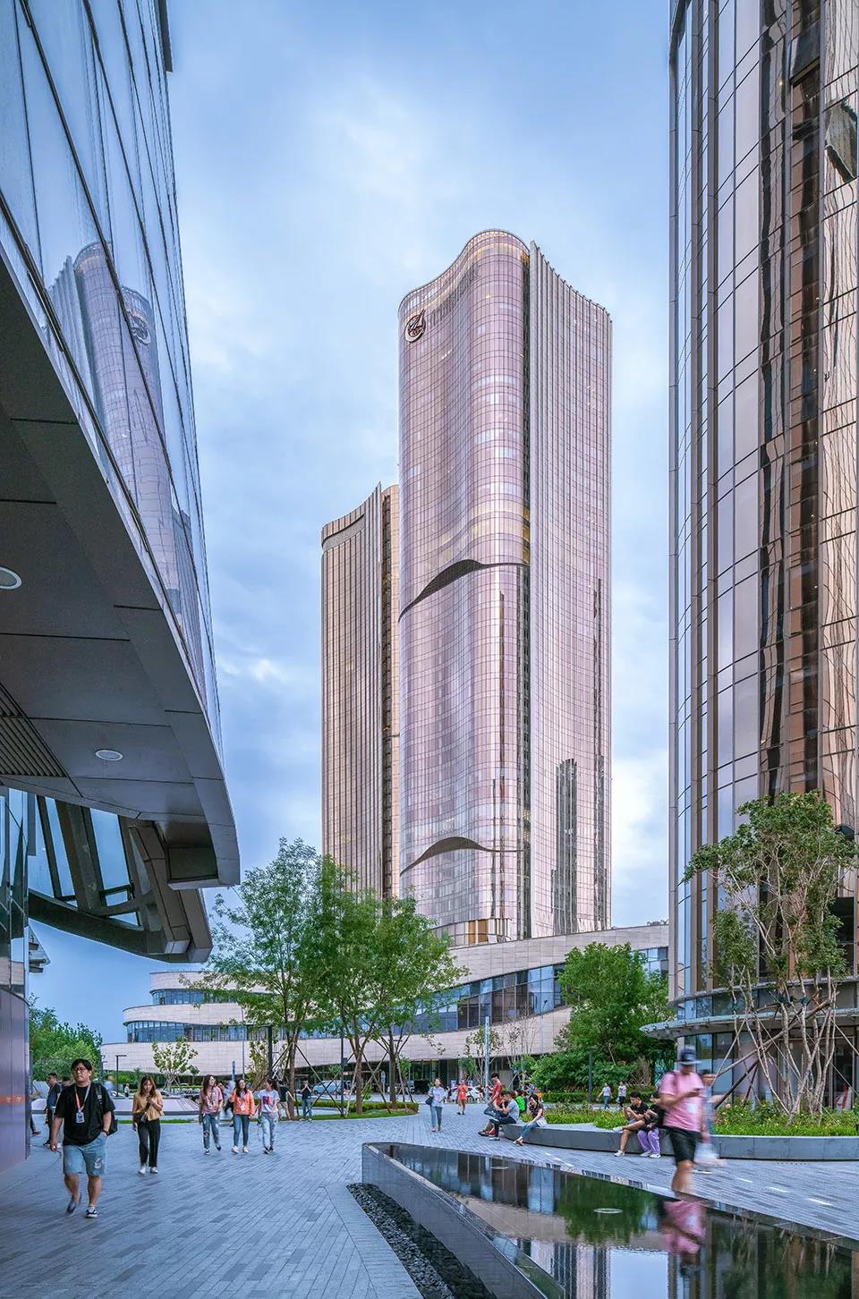 周邊不時有人經過,沒有商業街的擁擠喧鬧,也不會產生類似高墻窄路的壓迫,更像是有著花園氣質的第三空間,綠意、休閑、宜人,一個不少。欣賞著玫瑰金幕墻上的夕陽紅霞、云卷云舒,幕墻猶如裙擺般的婀娜曲線 ……繃緊了一天的神經也隨之漸漸放松下來。