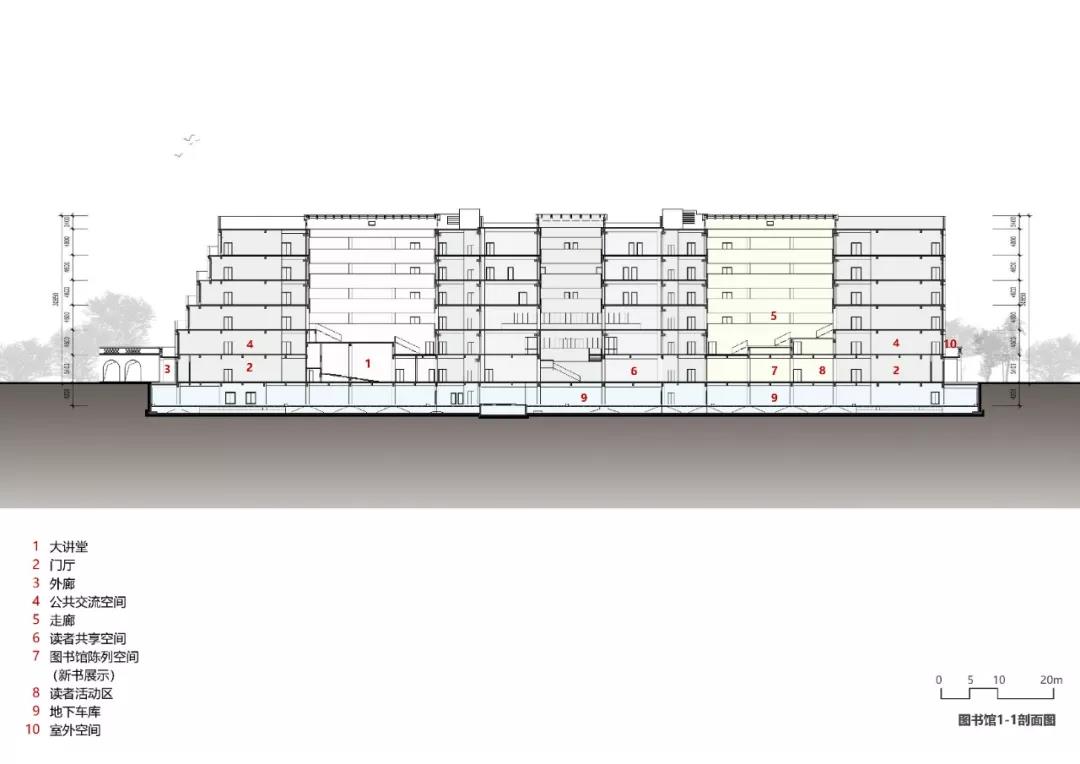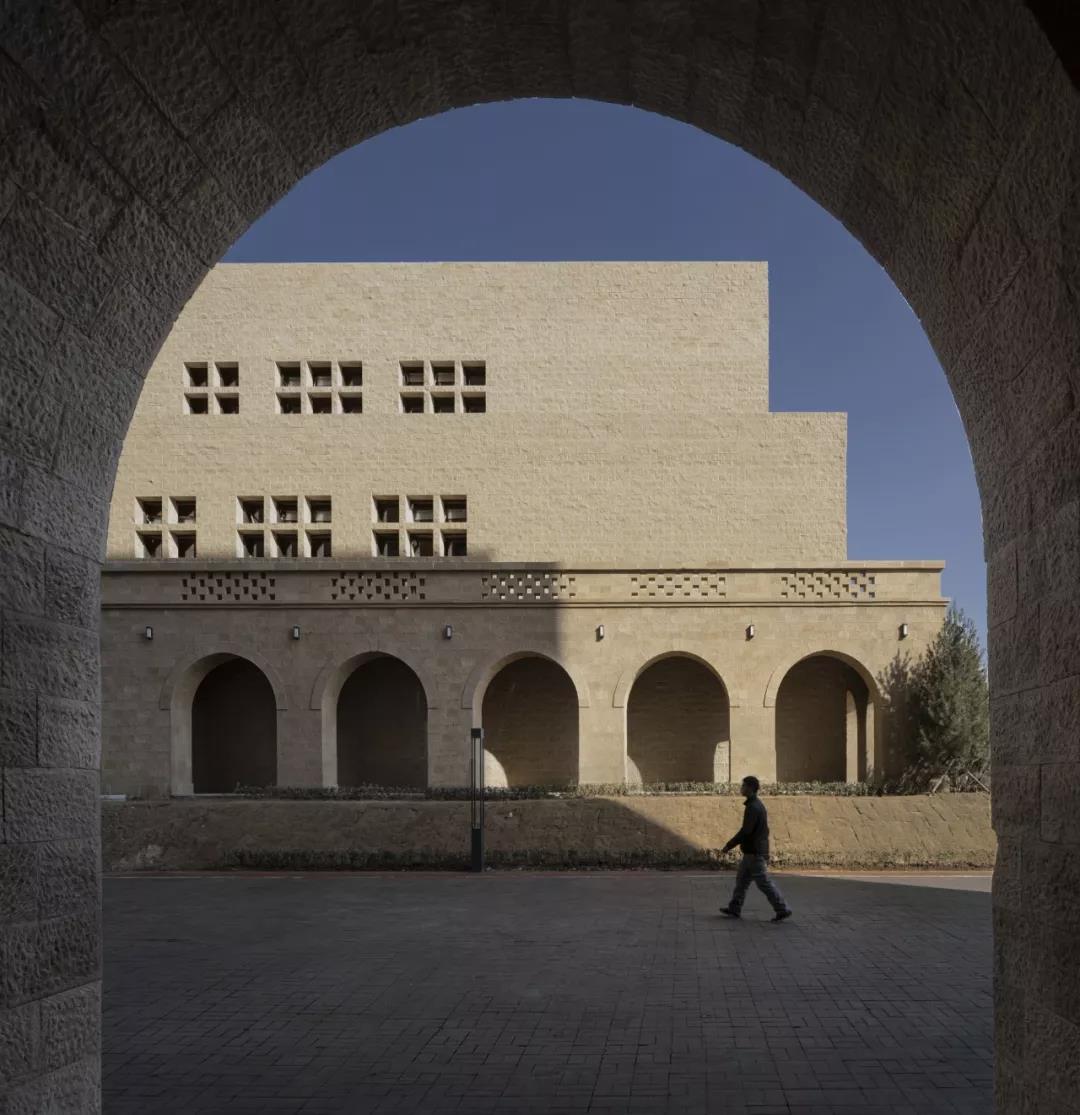同時拱廊形成舒適的半室外空間,夏天遮陽、冬天擋雪,有效應對延安夏天暴曬、冬天氣候特點,為師生提供絕佳的交流場所,也作為聯系不同功能區的步行廊道。