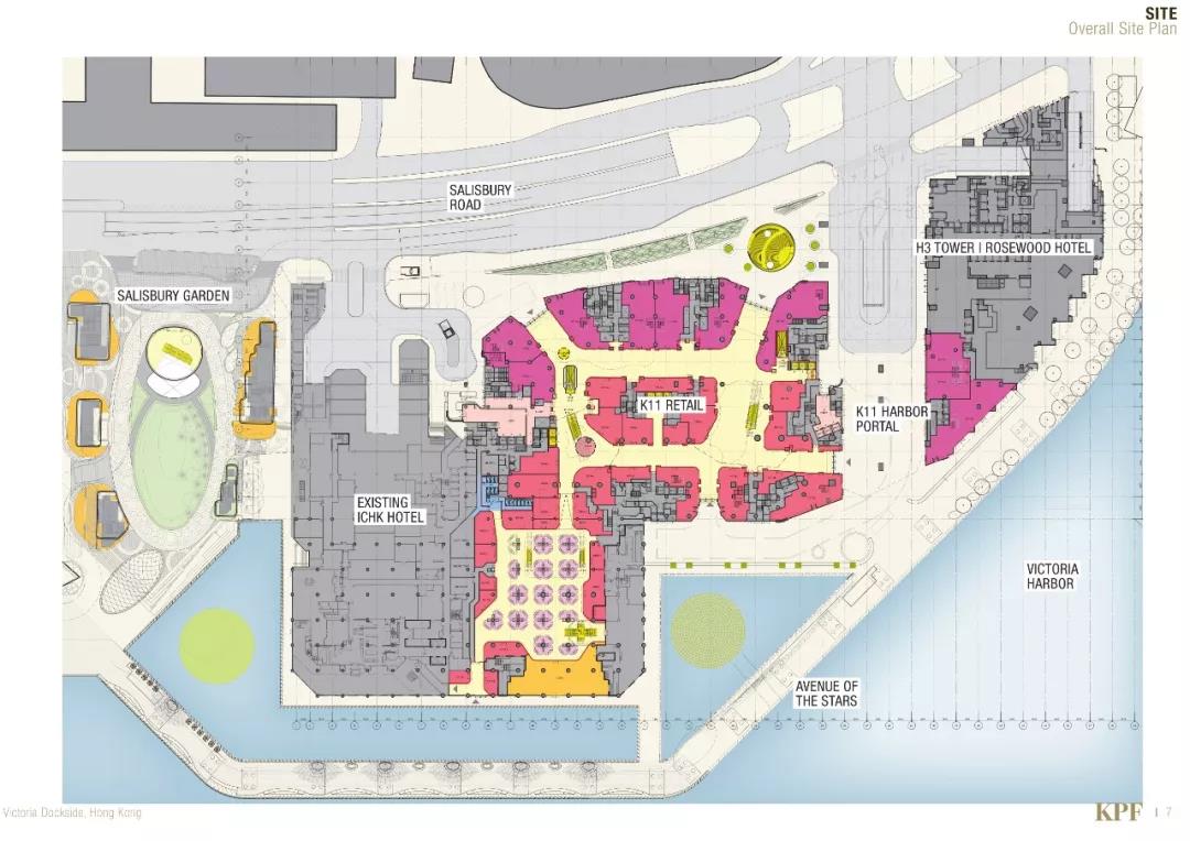 維多利亞港項目包含一座65層的超高層綜合大廈(香港瑰麗酒店及K11辦公大樓),21層高的酒店式公寓K11 Artus寓館,位于維港旁的海濱長廊“星光大道”(為表彰香港電影界杰出人士的特色經典,效仿洛杉磯著名的星光大道建成),梳士巴利花園,以及10層樓高的文化零售空間K11 MUSEA。