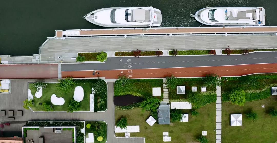上海市因港而興,如果說(shuō)上海是現(xiàn)代中國(guó)的鑰匙,那么港口碼頭則是現(xiàn)代上海的門(mén)戶(hù)。方案以三個(gè)入口廣場(chǎng)為載體,設(shè)置港口文化主題區(qū),講述了上海港口發(fā)展的歷史與精神。在濱江整體布局上,立足于“建設(shè)上海國(guó)際航運(yùn)中心”的國(guó)家戰(zhàn)略高度,以“打造北外灘航運(yùn)服務(wù)集聚區(qū)”為目標(biāo),具有全國(guó)首創(chuàng)的節(jié)能節(jié)水型船閘的國(guó)航中心游艇港池在該區(qū)域落成,其水域總面積達(dá)到2.1萬(wàn)平方米,船閘開(kāi)啟即與黃浦江相連。游艇港池與西側(cè)國(guó)際客運(yùn)中心大綠地的交相輝映,在北外灘地區(qū)形成了“西綠東水”的開(kāi)放空間整體格局,共同構(gòu)成北外灘區(qū)域乃至整個(gè)上海城市濱江景觀的新亮點(diǎn)。