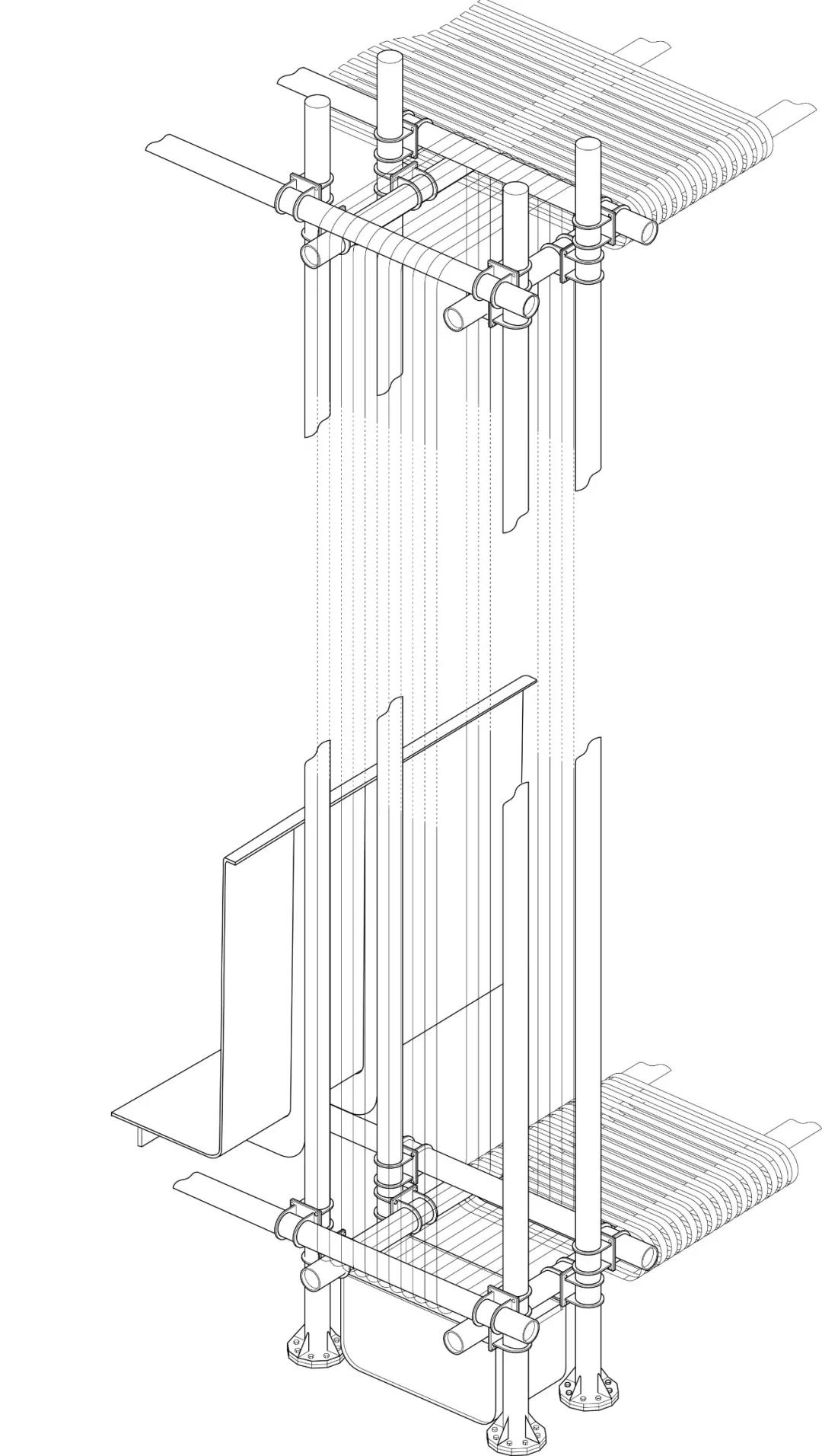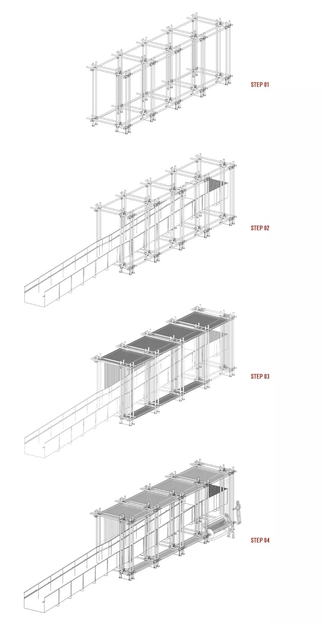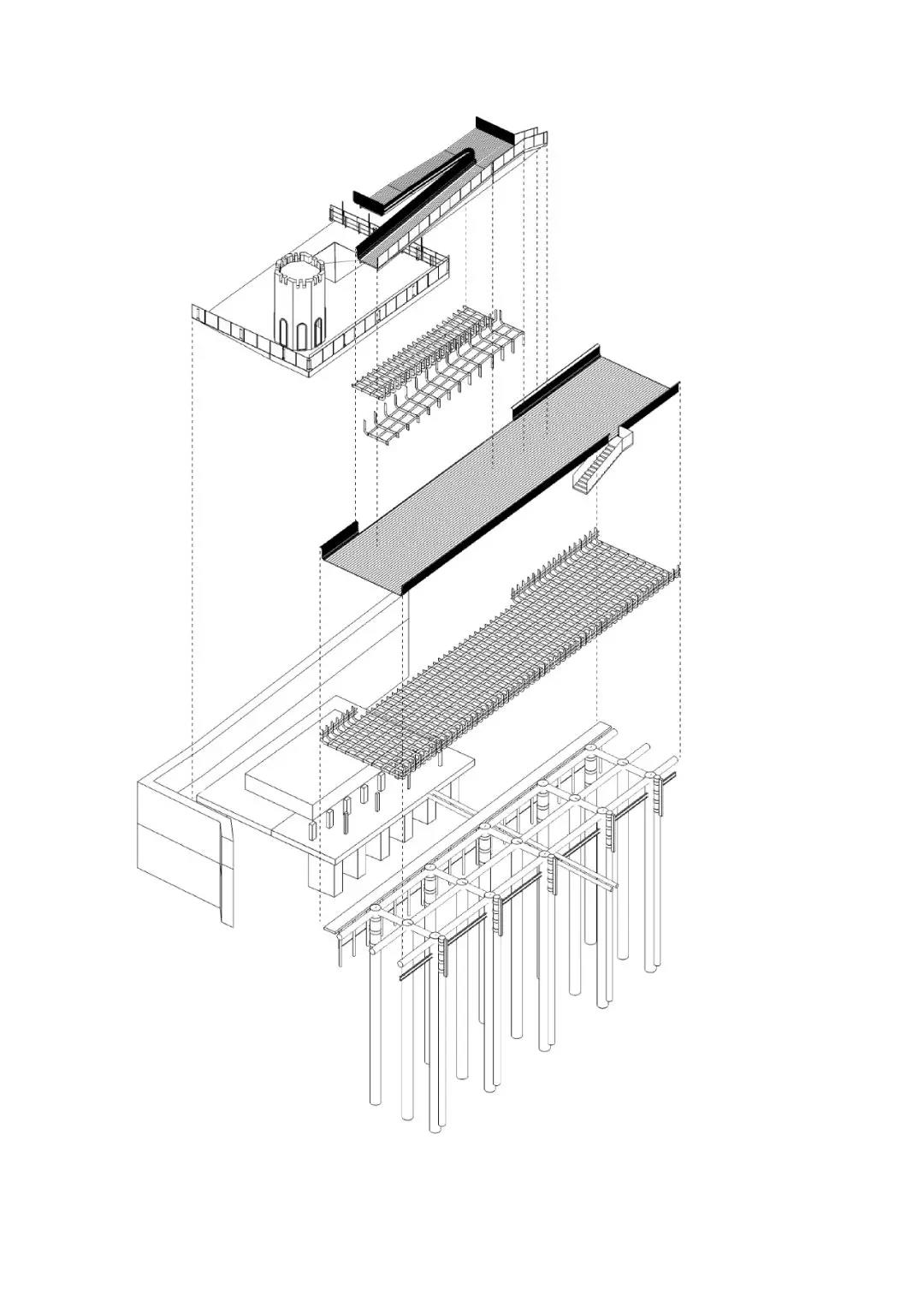 貼近黃浦江的楊樹浦水廠為公共空間的貫通提出了挑戰(zhàn)也提供了機會。利用水中基礎設施的結構作為棧橋的結構基礎,實現(xiàn)了斷點的貫通。同時將正在工作的基礎設施納入景觀設計的范疇,讓人們可以欣賞到原來難得一見的角度和景象,也為景觀設計和公共活動增添新的內(nèi)涵。