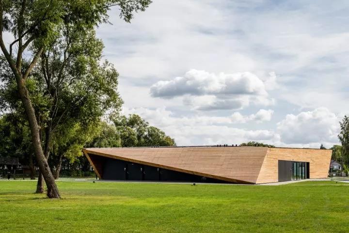 建筑外立面由天然西伯利亞落葉松板制成。水平排列的木板增強(qiáng)了體量的動(dòng)態(tài)效果,自然的色彩讓建筑更和諧地融入周邊景觀(guān)。皮劃艇基地的屋頂擁有大片綠植,室內(nèi)設(shè)計(jì)保持了嚴(yán)謹(jǐn)、簡(jiǎn)約的風(fēng)格。