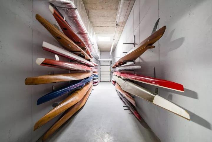 基地建筑是當(dāng)?shù)仄澩Ь銟?lè)部的訓(xùn)練和會(huì)議場(chǎng)所,也是組織比賽和體育賽事的場(chǎng)所。建筑內(nèi)設(shè)有培訓(xùn)設(shè)施、衣帽間、全景水景健身房、俱樂(lè)部的房間、運(yùn)動(dòng)器材倉(cāng)庫(kù)和公共衛(wèi)生間。機(jī)庫(kù)建筑有兩個(gè)存放水上設(shè)備的平臺(tái)、一個(gè)屋頂支架和摩托艇存儲(chǔ)空間。