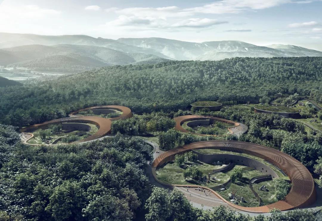 四個大熊貓新舍的設計融合了景觀、建筑和大地藝術,使建筑融于自然,同時以自然環境作為創作媒介,建筑仿佛是與自然互動的藝術裝置,創造出一種富有藝術情景的大地藝術形式。未來,熊貓新舍將為中國帶來一個融合科技、教育、藝術和娛樂的獨特文化體驗。