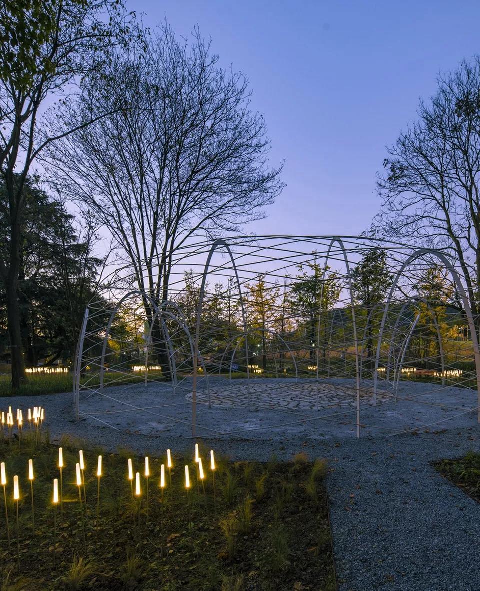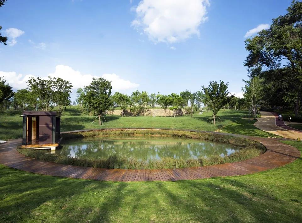 不需過多的設計、不加繁雜的裝飾,生活的美好便藏進了一草一木之中。在公園內構筑物建造上,秉持簡潔,將地形與覆土建筑結合,用幾何語言強調構筑物與環境的關系,塑造現代風格。