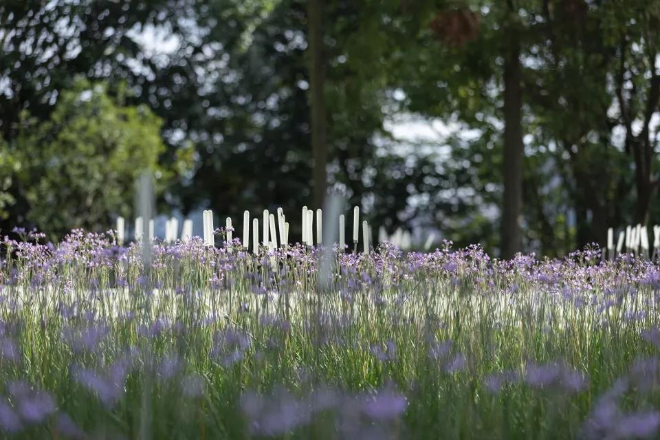 ▼林下種植耐陰地被玉簪、蔥蘭、紫嬌花占據,蘆葦燈點綴其中