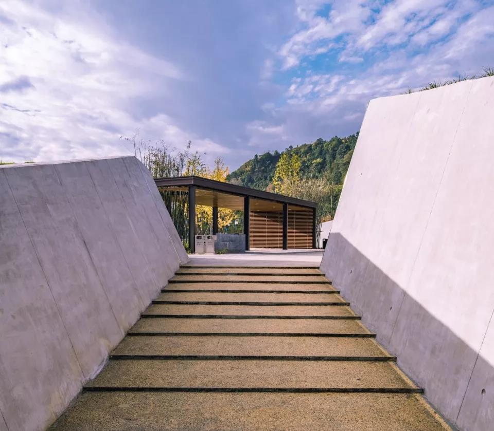 地塊高差復雜是本案設計難點之一。原場地南側現狀存在茂密林木,中部與西側最大相對高差約16米,西側和東側散落民宅。微創介入的核心設計手法被設計團隊貫徹始終,利用原有豎向關系、人地關系、植被關系因勢造景,輕設計、重本源。