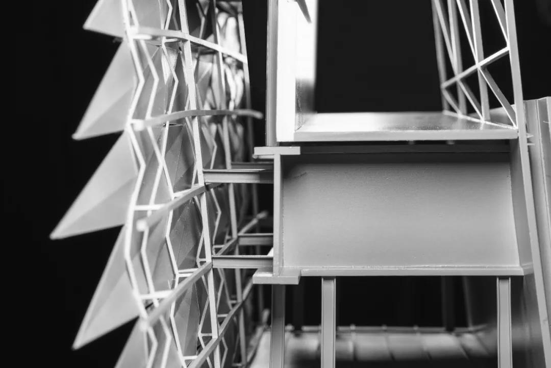 建筑造型中的螺旋廊道直接反映設計理念的真實邏輯,而立面語言則從錢塘江古海塘五縱五橫的模塊化筑塘法中得到啟示。