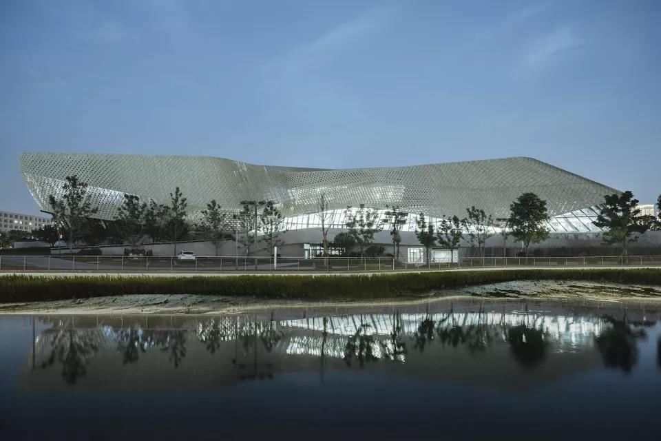 寧波市擁有悠久的陶瓷生產歷史,人們口中所說的陶瓷之路(Ceramic Road)就是從這里開始的。可以說,從古至今,寧波這座城市在中國乃至國際的陶瓷貿易中都發揮了重要的作用。但這并不是本項目選擇釉面陶瓷作為建筑表皮的唯一原因。這種釉面陶瓷不僅致敬了當地的歷史文化,更能短暫地反射周邊的景觀環境。根據時間、季節和天氣的不同,反射在建筑表皮上的圖像也不盡相同,從而創造出一種永遠處于變化之中的動態感。