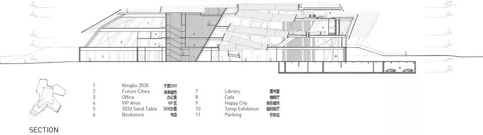 隨著城市的迅速發展,很多大城市都出現了一種特殊的展覽館——“城市規劃博物館”,以便于向公眾展示城市發展在現階段已經取得的成就。寧波市城市展覽館并不只是一個展覽空間,它更為城市化進程中的所有利益相關者提供了一個聚集地。它將市民、兒童、城市規劃方面的專業人士、專業學者、公務員和政府人員等對空間的需求結合在了一起,在城市新區內創造出一個引人入勝的公共空間,從而促進了市民與城市管理者之間的對話。