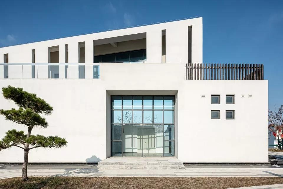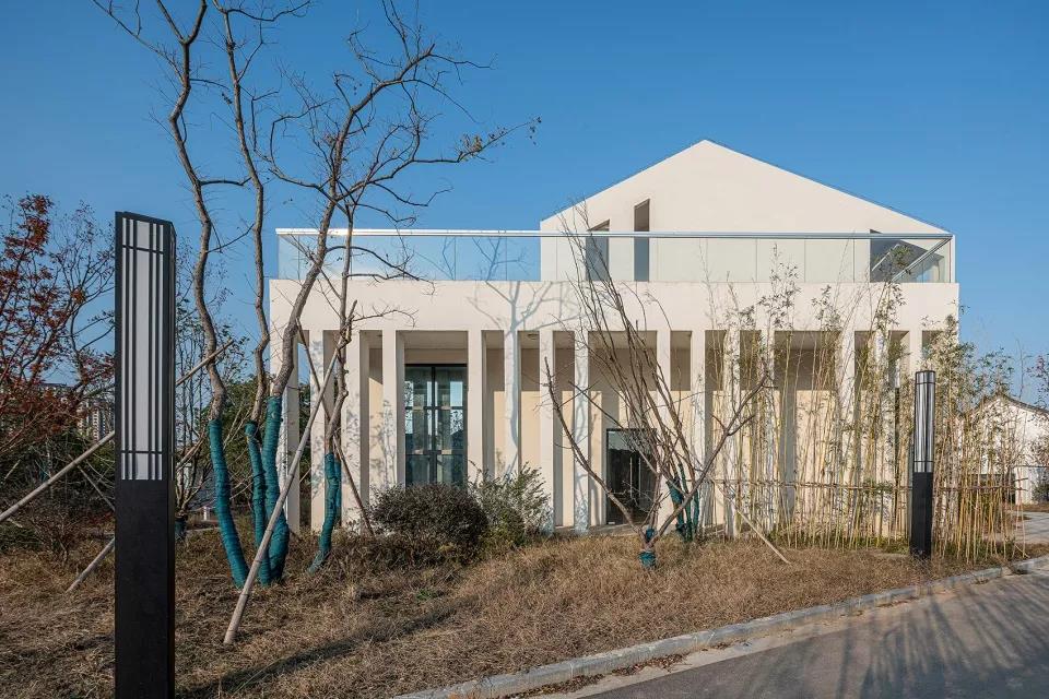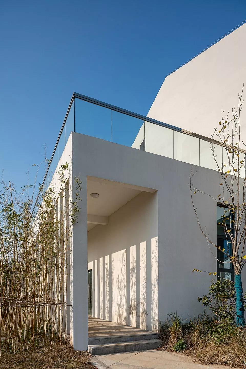 在空間上注重室內外的交融和內部空間的流動,也引入了傳統建筑中“廊”這一經典元素。在細部構圖中借用了“飛白”的墨法,不同的檐廊的邊界做了不同的造型設計,或是雙柱,或是四柱,又有寬窄不一的片墻組合。不同形態的柱廊完形了建筑體量,更使得建筑形態有了豐富的虛實關系和光影變幻的立面效果。
