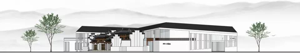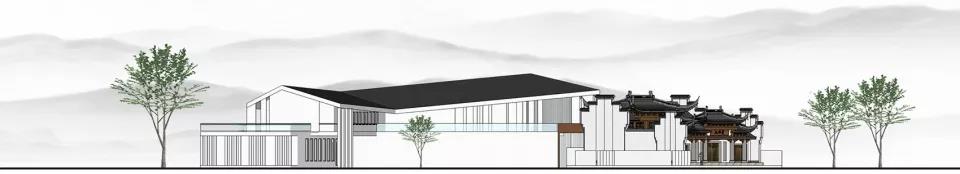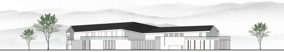 在建筑形態上,提煉了“之”游動的形態,以及林散之書法瘦勁飄逸的特點,結合烏江老街延綿的粉墻黛瓦坡屋頂的特征,生成了黑白起伏的立面形態。
