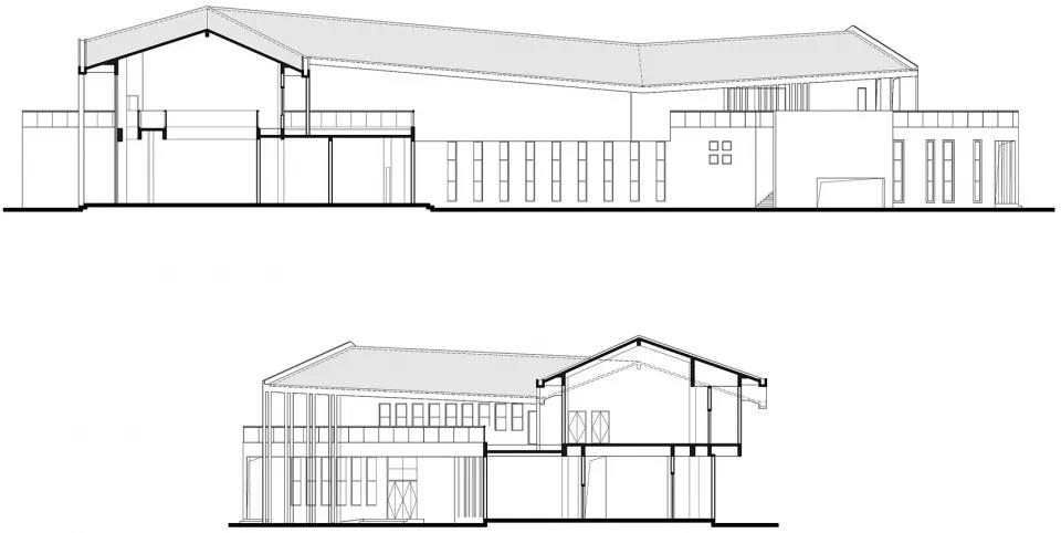 ▼主館南立面,不同的檐廊的邊界做了不同的造型設計