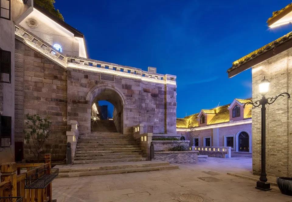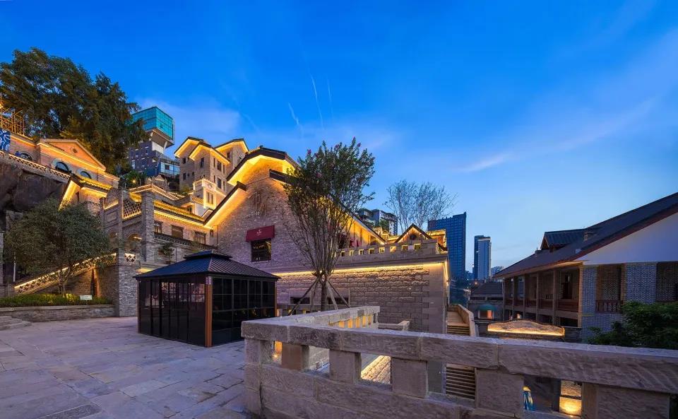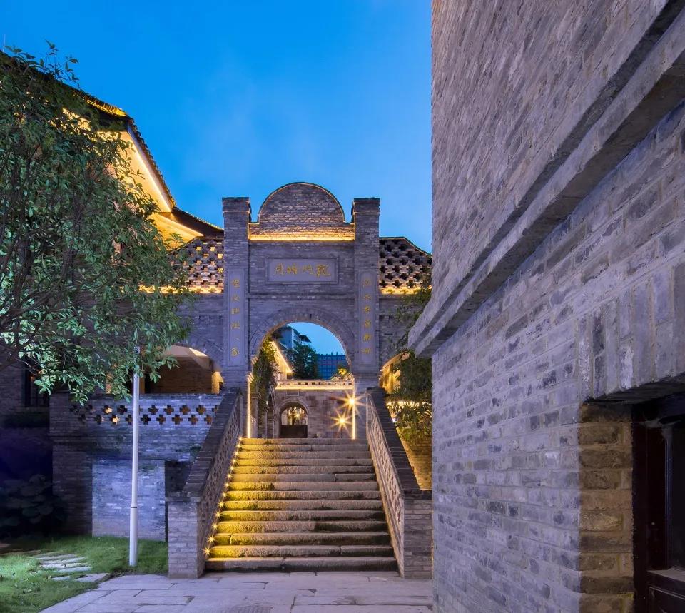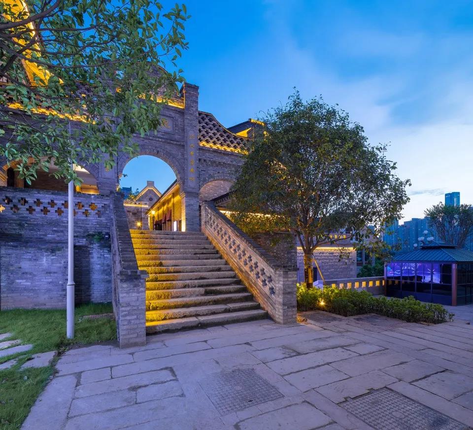 ▼項(xiàng)目主入口夜景,達(dá)到修舊如舊、留住“山城記憶”的設(shè)計(jì)目的
