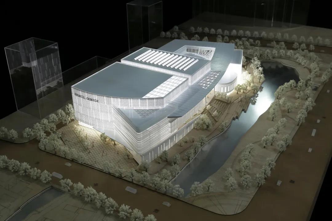 基于不同的使用場景,運用不同的立面表情,是另一種思路,也是一個大膽的嘗試。在職工文體中心的項目上,存在著演藝和健身兩種不同的行為,存在著儀式感和日常性的差異,存在著政府會議期間局部封閉管理的要求,這些都成為兩個廣場、兩種表情的前提,成為一體兩面實驗的邏輯基礎。顯而易見的,兩種手法的并置帶來了意外活力,同時帶來了對比和碰撞。如何將沖突轉化為節奏,統一兩者的調性,是接著必須處理的任務。
