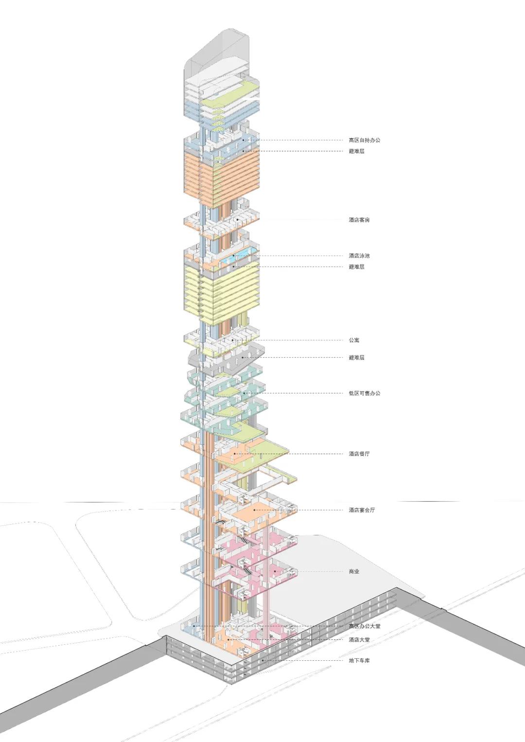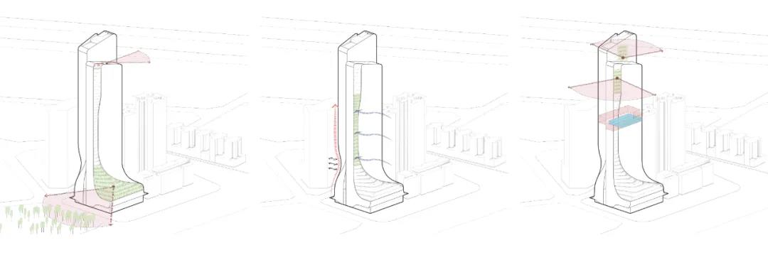 GWP提倡“建筑是一種詩意的棲居,以恰到好處的平衡之美營造獨特的建筑形象和空間氛圍”。設計團隊希望在這個地標高層綜合體的設計中本著以人為本的出發點,注重采光,通風,與自然生態景觀相融合,引入多層次交互開放空間,在建筑形式與結構美學相得益彰的同時,賦予項目豐富的個性和獨特的魅力。