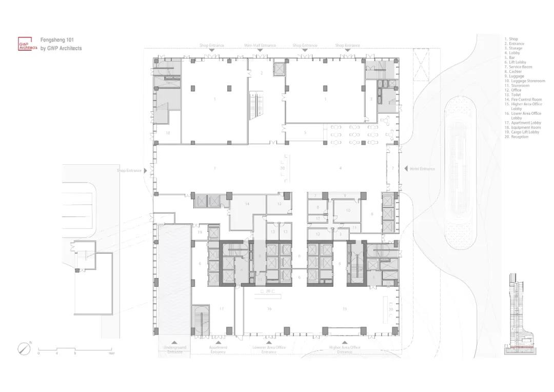 豐盛101項目位于廣州增城荔新大道旁,其北側遠眺南香山,南側遙望廣州珠江新城,坐擁粵港澳大灣區和廣深創新走廊核心區位優勢。該項目與周邊交通體系相結合,助力于大灣區一小時生活圈的建設。該項目總建筑面積約15萬平方米,GWP負責二期200米高的綜合體設計,涵蓋了酒店、辦公、公寓、商業等多種業態。