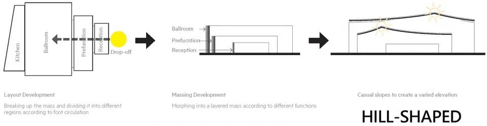 ▼中軸線布局的酒店,兩座酒店大樓置于總體規劃的北部