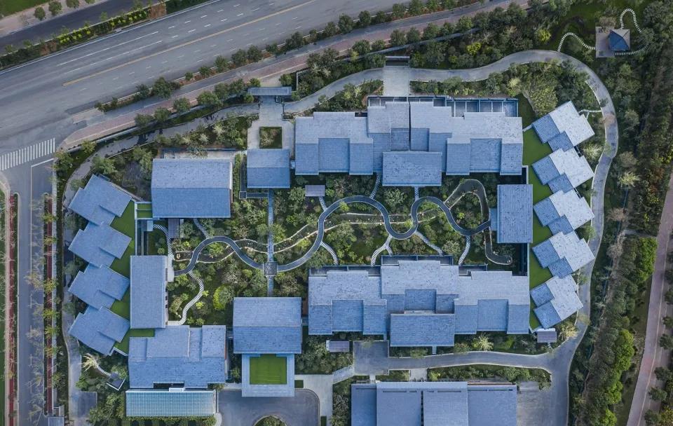▼別墅之間以流暢有序的庭院花園連接,將戶外自然環境與室內空間無縫連接