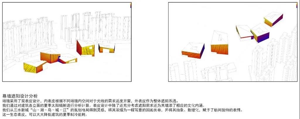 遮陽?????是通過?照模擬分析計算各個??的遮陽系數,另???將三?新城的規劃理念轉化為抽象的國畫?卷注???的參數化遮陽。最后沿?眾多?之有效的嶺南建筑語匯,以應對亞熱帶季??候所帶來的?溫、濕熱?候。