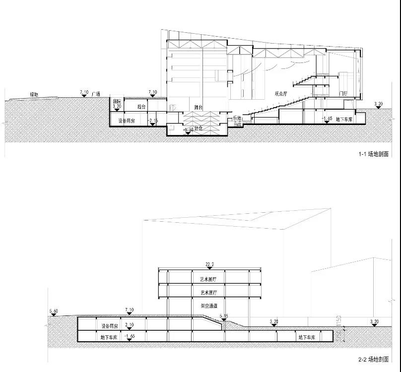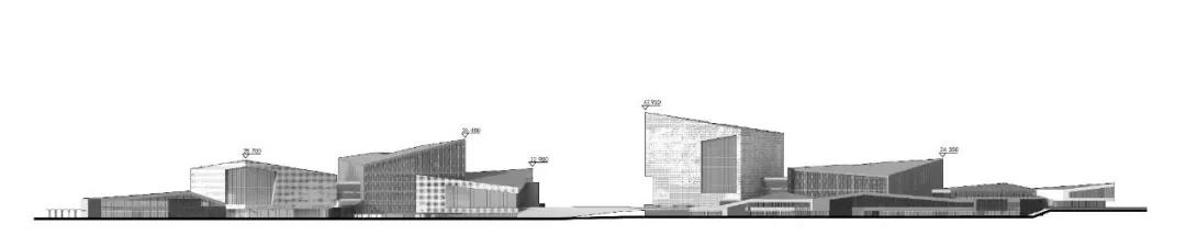“超級地表”之下成為場館的使?功能與商業的功能?房。由于場館將近1/4的體量被置于“超級地表”之下,使得建筑師所控制的地?建筑尺度在后期深化中,即使業主對場館的規模及內容作出了較?的調整后,仍能保持原設計體量感覺。最終真實實施的體量規模與概念階段的,相差甚微。