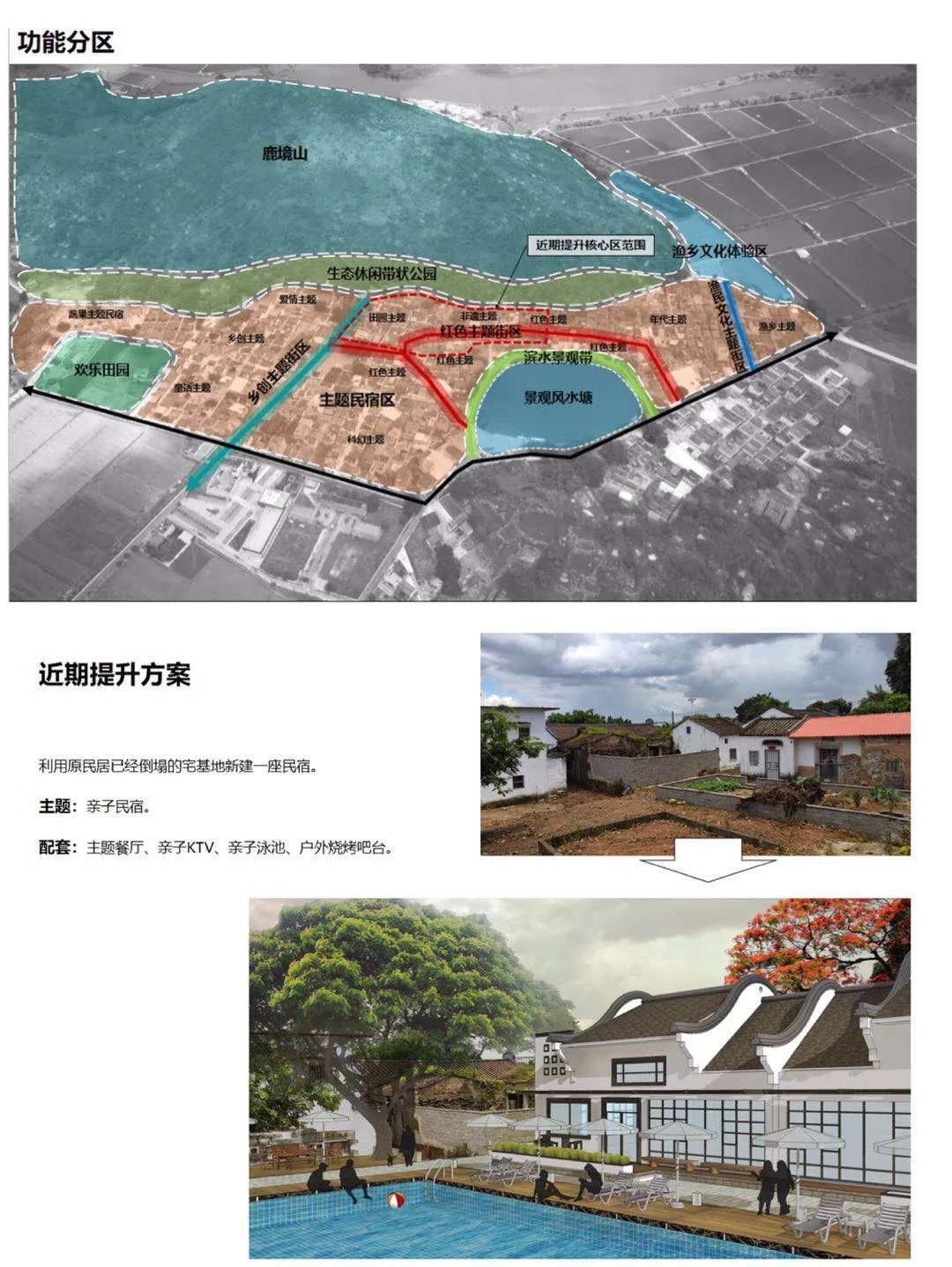 柏深?弘基(深圳)規劃部的項目團隊對新山村項目的村莊建設現狀存在的問題:部分建筑質量差,需要進行修繕改造;部分現代建筑混雜在傳統建筑之中,風貌不統一、不協調;窗戶和門框缺少特色;村內缺乏大量的商業店鋪、民宿、娛樂項目等旅游服務設施,游客接待能力不足等進行分析。最終結合現狀提出了相應的建筑風貌:人字坡屋頂 + 黑白灰色調,嶺南風情的建筑特色;利用優越的區位條件、良好的村落布局;豐富的生態文化資源;現代化的美麗鄉村,抓住鄉村振興的政策利好,大力發展旅游服務,同時提高村民的收入。