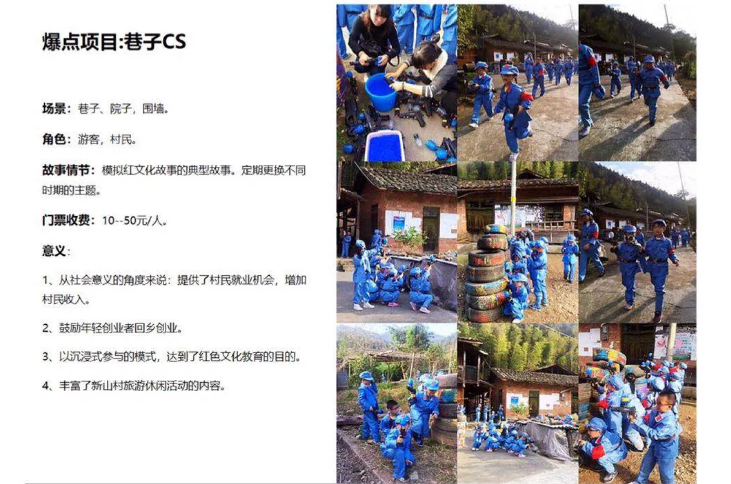 新山村在黨的十九大精神感召下,繼承和發揚優良的革命傳統和紅色精神,積極挖掘紅色文化資源,打造紅色旅游產業。同時,結合社會主義新農村建設,充分利用新山村豐富的人文資源,講好新山紅色故事,寫好新山紅色文章。并將農會舊址、隊部舊址、烈士故居等紅色遺址納入新農村建設的規劃,打造“紅色一條街”,建設一個集旅游休閑和紅色教育基地于一體的社會主義新農村示范村。